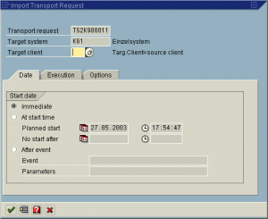 – Fill in the target client in the subsequent dialog (e. g. 800) and use default settings for the other options (“Start date” should be set to “Immediate”)